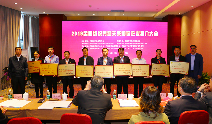 公司榮膺“2019全國紡織勞動關(guān)系和諧企業(yè)”榮譽稱號