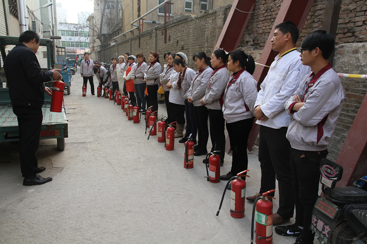 消防部組織超市員工進(jìn)行消防培訓(xùn)和實(shí)際演習(xí)