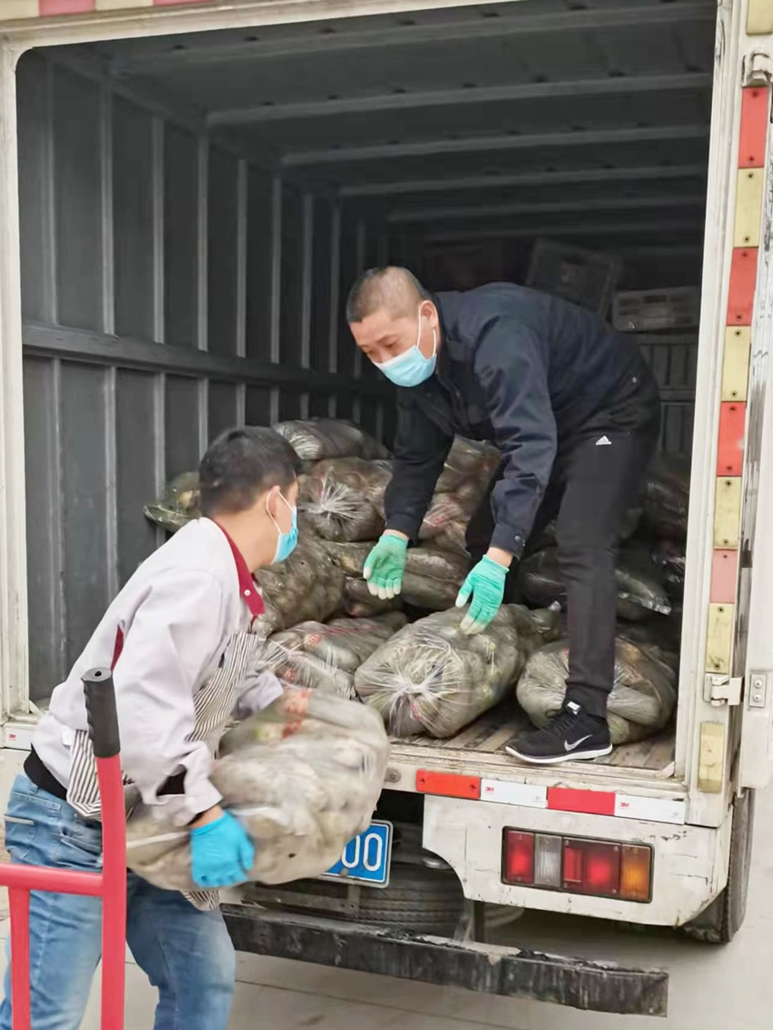 店長趙建寶及時作出決斷和安排,帶領大家在疫情之下有序營業(yè),同時想盡各種辦法保障生鮮供應,充分發(fā)揮了榜樣引領示范作用,使得高新店形成了“人人都是一塊磚,哪里需要哪里搬”的工作氛圍。為了保證貨源充足,能讓顧客買到新鮮且價格便宜的蔬菜,凌晨3點趙建寶、王金文和劉軍偉三個人就開著貨車一起去壽光進菜,后來,連壽光都沒法批發(fā)葉菜類生鮮產(chǎn)品了,就想辦法聯(lián)系以前去進過菜的種植戶,直接到田間大棚采購。貨車到了后,林艷菲在群里一吆喝,大家就都放下手里的活兒先幫忙卸菜,人多力量大,保證開門之前把新鮮的蔬菜整整齊齊地擺放到貨架上。