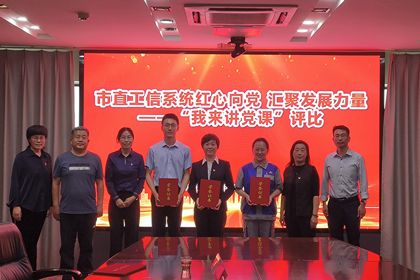 4月28日下午,公司黨委組織黨員參加濰坊市工信系統(tǒng)“我來(lái)講黨課”活動(dòng),第一黨支部房倩同志、第二黨支部彭娟同志代表公司參加活動(dòng),并榮獲三等獎(jiǎng)。
