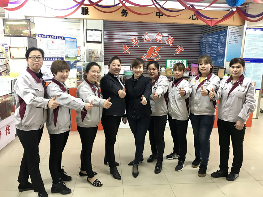 還要非常感謝這次調(diào)整從兄弟店來幫忙的各位員工,何輝、徐佳佳、孫志康、趙泉泉等,也充分看出我們豐華超市是親如一家的大家庭。